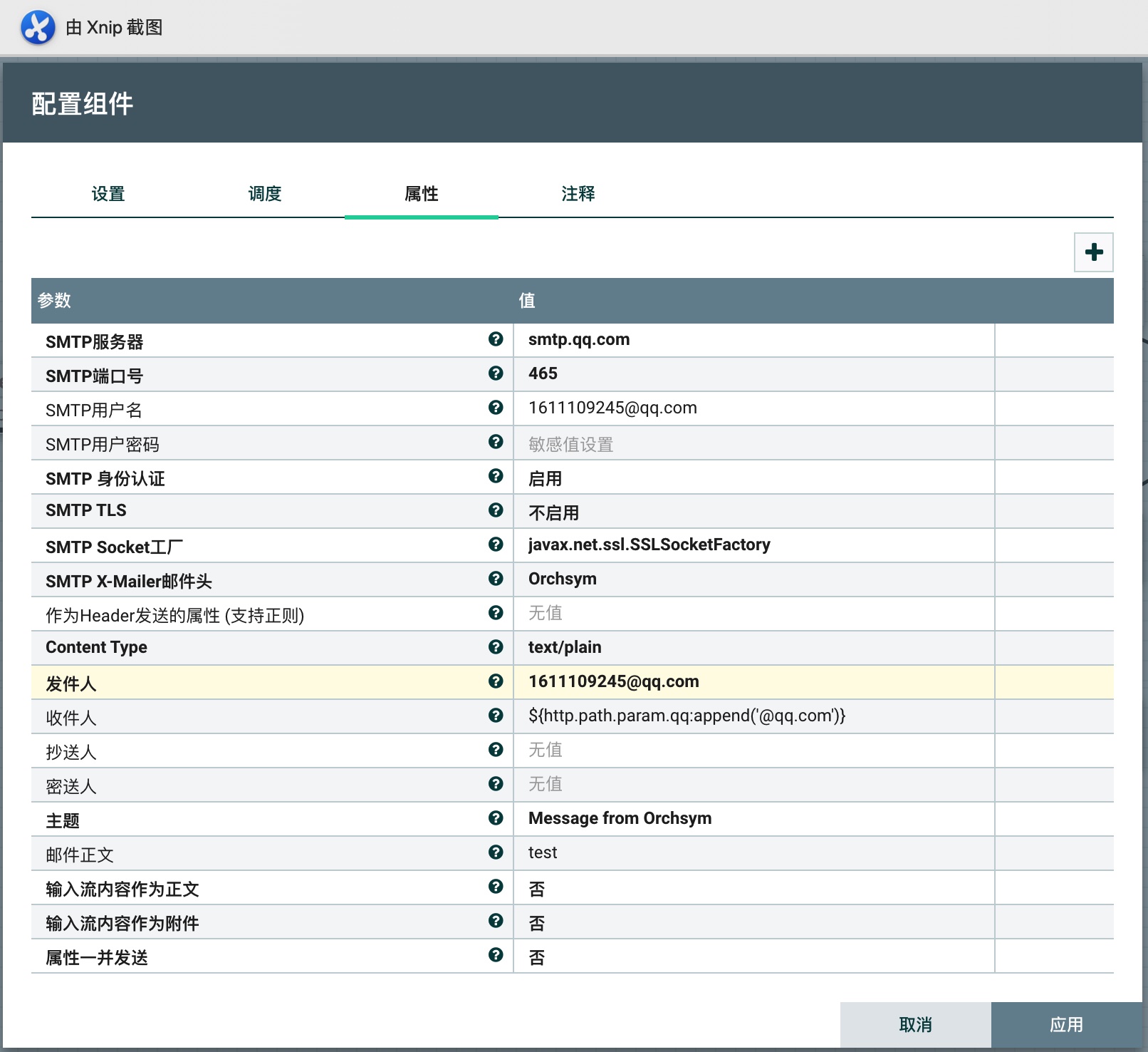 属性中通过表达式提取Path参数,拼接上QQ邮箱后缀