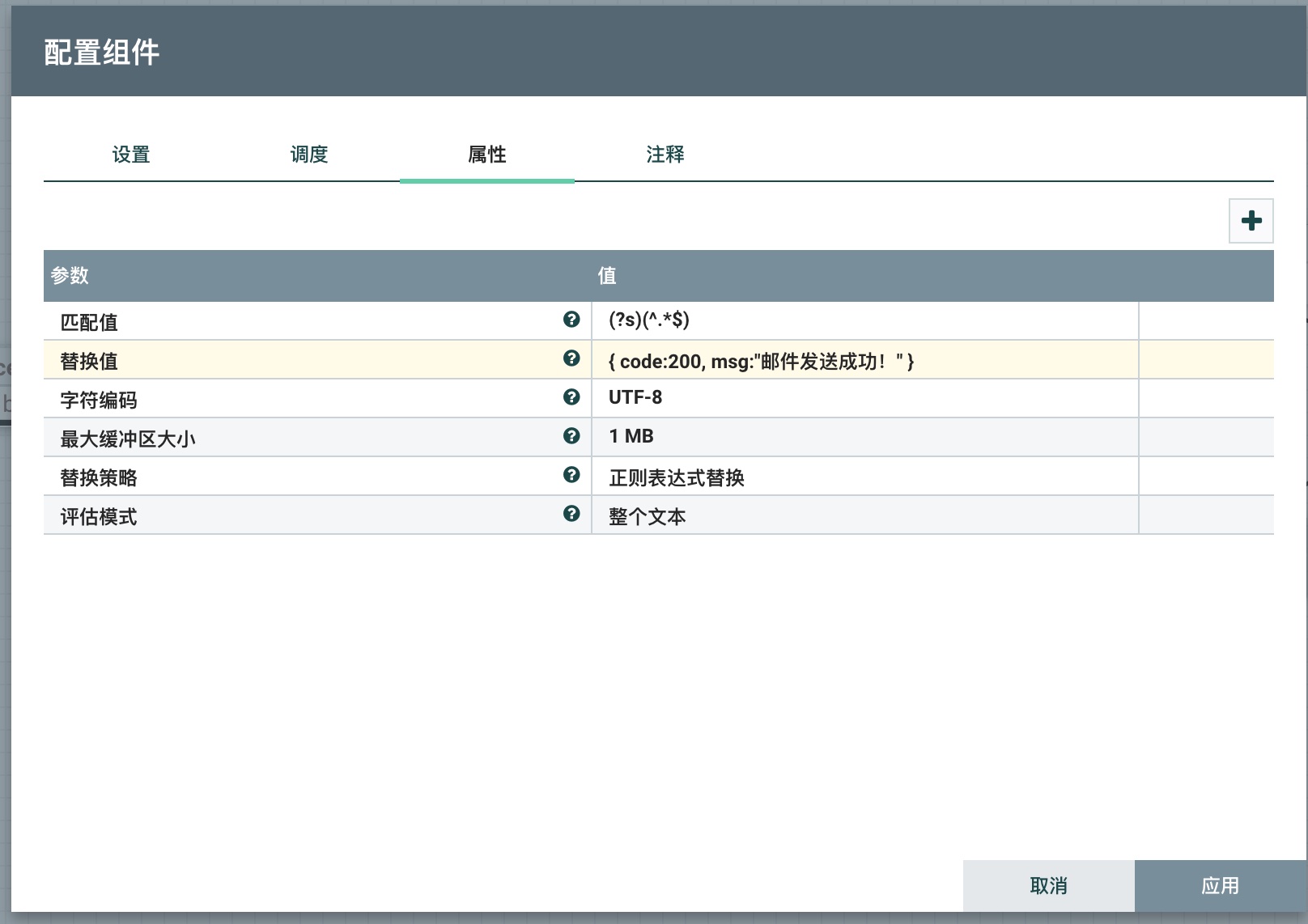 - 替换值:配置替换内容,本流程中替换为邮件发送成功或失败相关的JSON信息
