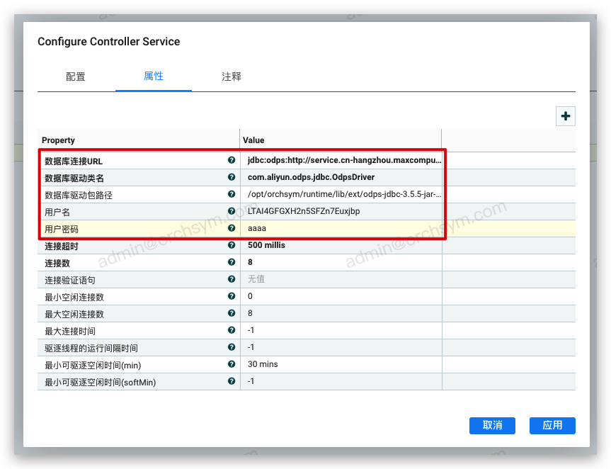 jdbc:odps:http://service.cn-hangzhou.maxcompute.aliyun.com/api?project=orchsym