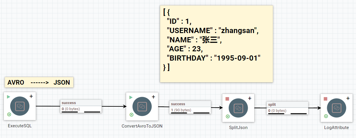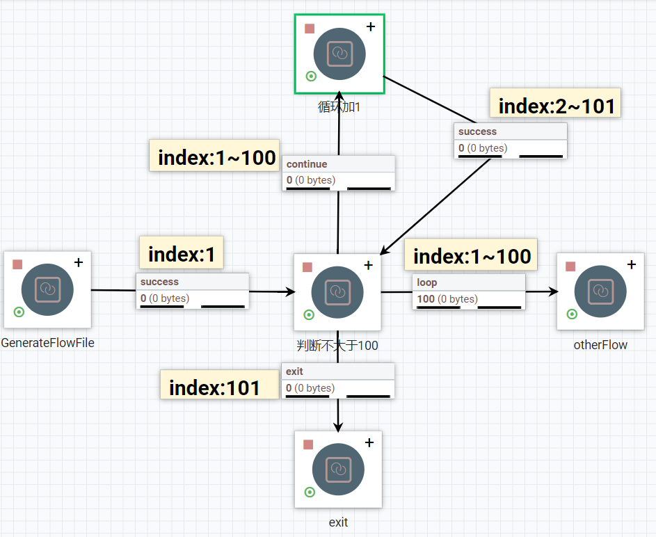 - 动态增加带路由条件的输出流 validAge = ${age:ge(18)},表示如果age大于等于18,则会流向validAge的flow,否则会流向unmatched的flow。