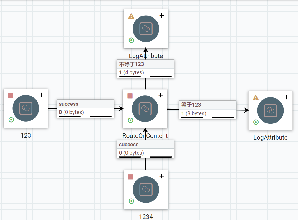 - 动态增加带路由条件的输出流 allMatch =123,表示如果内容完全等于123,则flow会流向allMatch 的flow;不能完全等于123的,则会流向unmatched的flow