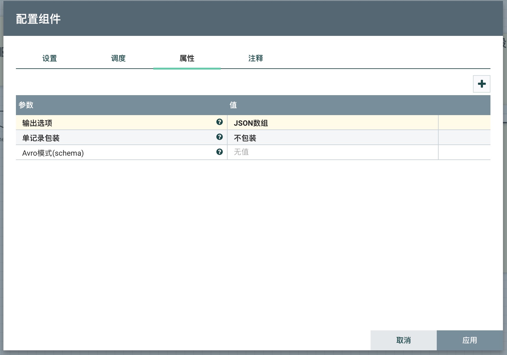 ExecuteSQL组件查询到的数据输出格式为Avro,不便于查看,通过ConvertAvroToJSON将数据转换为JSON格式