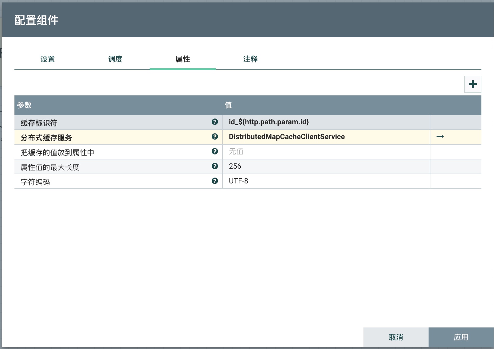 - 分布式缓存服务:指定用于缓存数据流的控制器服务DistributedMapCacheClient,本流程中需与PutDistributedMapCache、DeleteDistributedMapCache组件共用同一个控制器服务