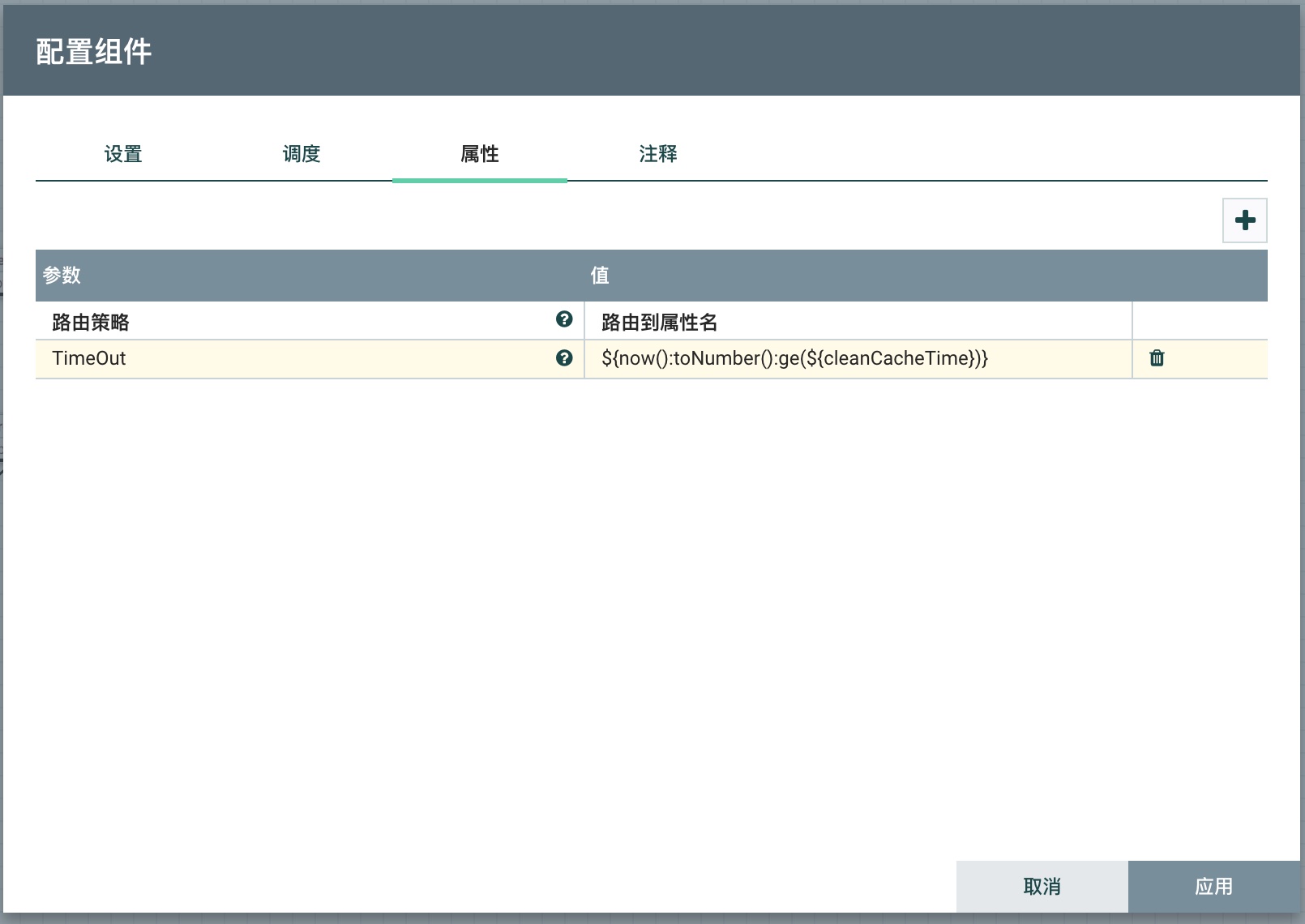 RouteOnAttribute组件用来配置缓存删除,通过表达式来达到一个循环的效果