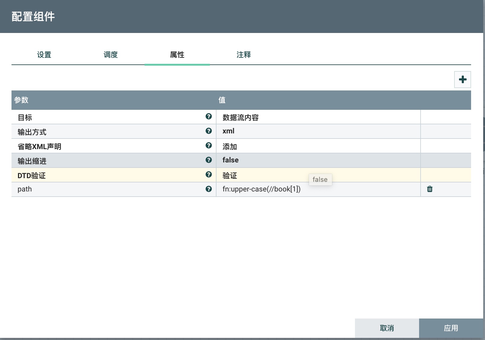 为"fn:upper-case(//book[1])",其余属性保持默认配置。