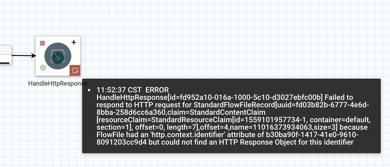 because FlowFile had an 'http.context.identifier' attribute of b30ba90f-1417-41e0-9610-8091203cc9d4 but could not find an HTTP Response Object for this identifier