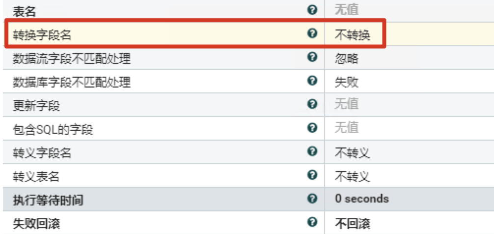 所以默认应该将组件的参数“转换字段名”设置为“不转换”!!!