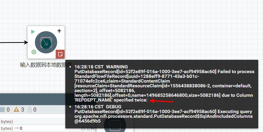 并且组件参数“转换字段名”设置为“转换”值,那么在执行数据插入或更新时,可能会报: