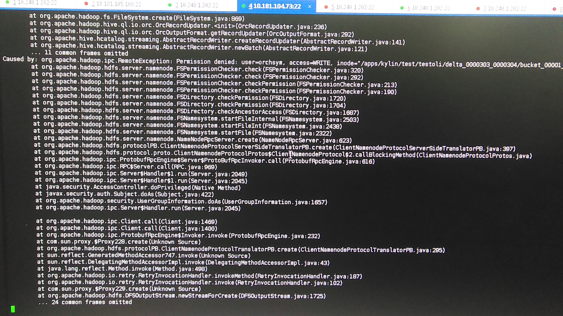 典型组件配置示例PutHiveStreamingHDFS权限On this pageHDFS权限问题当报错:permission denied详细日志: 解决方法使用hdfs命令修改文件的读写权限。 尽可能加上-R,一并处理子文件夹和文件。