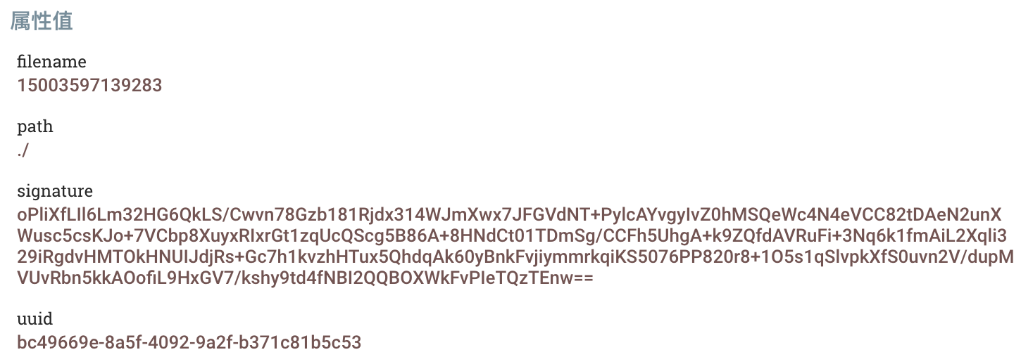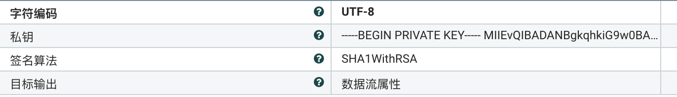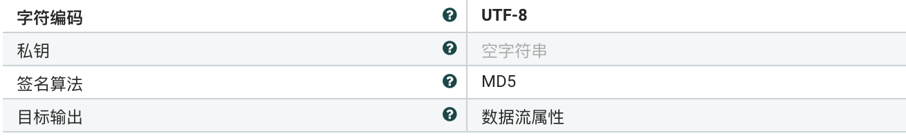 - 数据流属性 ,签名的结果将作为新属性“signature”的值,跟随原始数据流一起输出。